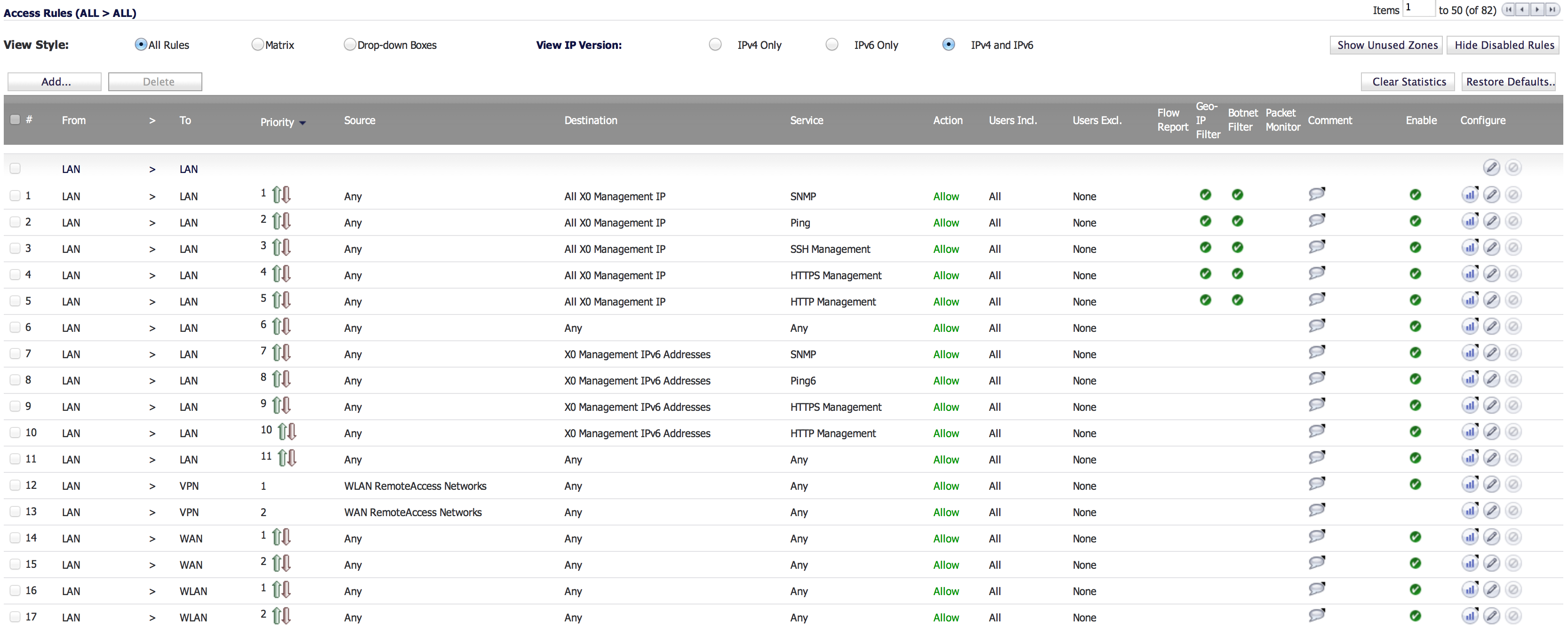 This brings me to my problem with Sonicwall (and many network and network security vendors). My licenses have all expired. I can understand having to license services that cost money because they’re licensed upstream services. I get that, I really do. However, Some of the things that Dell requires licenses for seem a bit extreme to me. The fact that I get essentially zero visualization options once the licenses expire is downright shameful. No worries, I’ll just export Netflow/IPFIX data. Nope, also a licensed feature. You heard that right. No flow export, no real time monitor. Heck, I can’t even look at interface graphs on-box. I have to poll with a 3rd party tool suite. Realistically, one gets significantly better instrumentation from a default pfSense load. And pfSense has had IPv6 support for years. If you take away all of the downright shameful licensing requirements to do anything useful with trending and instrumentation, this is a good platform. Their IPv6 support is solid now. However, for anyone running networks that require instrumentation and visualization, you had better budget for [unnecessary] fees or have 3rd party mechanisms for collecting the data.